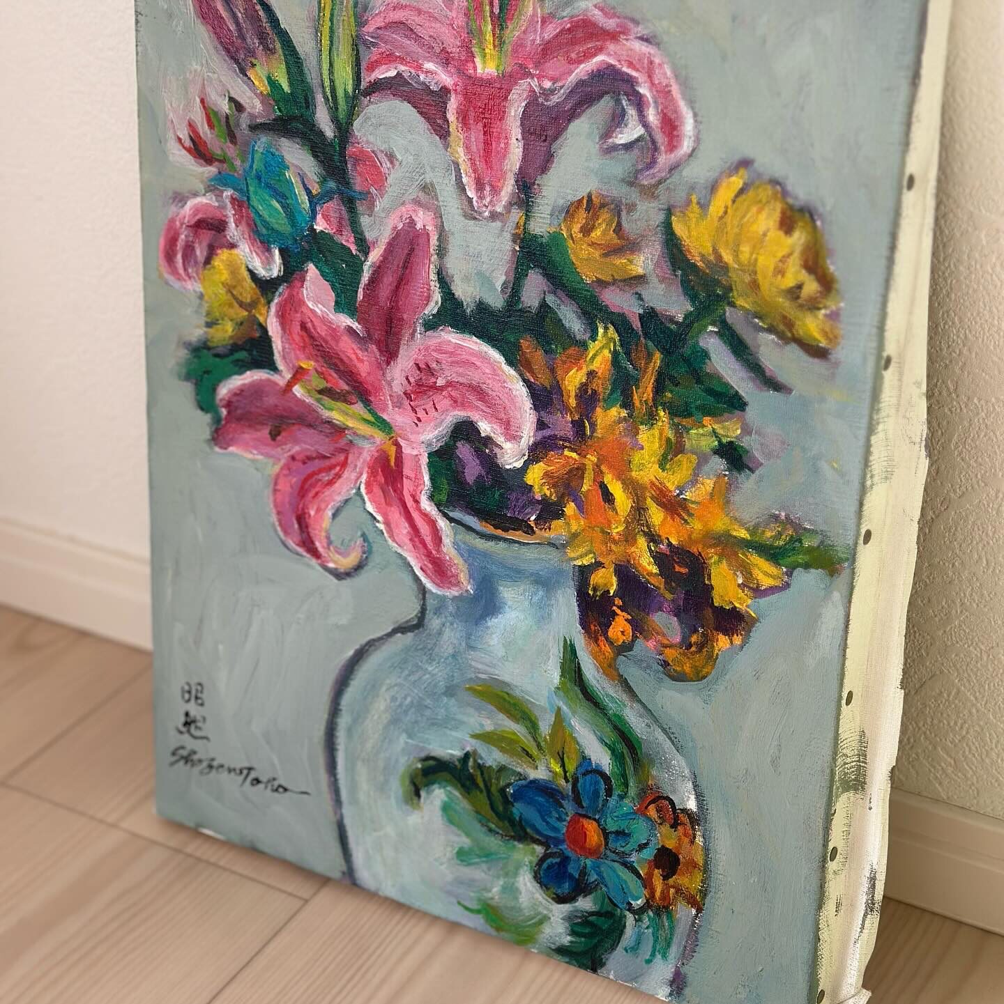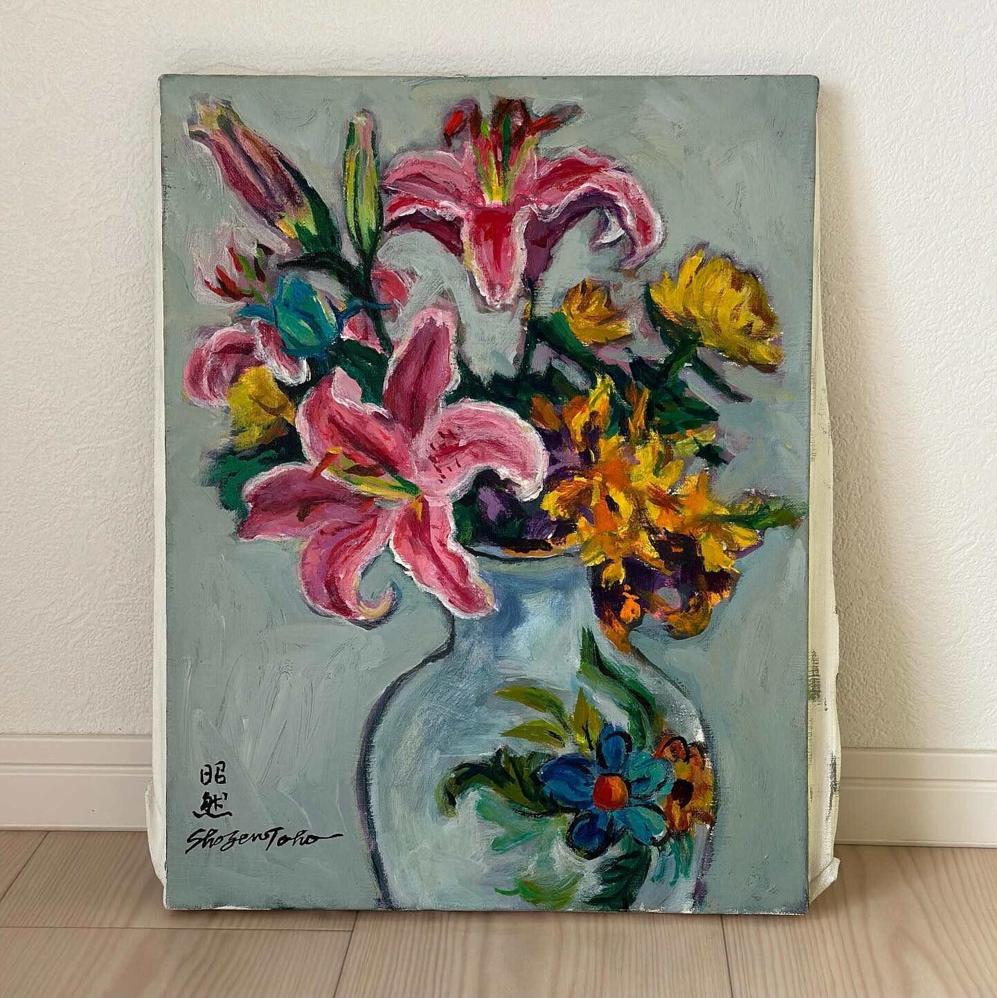 「ユリの静物」 Uncategorized 2026.04.052026.04.06 「ユリの静物」 Lilies in Vase 東方昭然による油彩作品。 制作年不詳。 作品詳細 技法:油彩 支持体:キャンバス サイズ:F6(410×318mm) 制作年:不明 ギャラリー