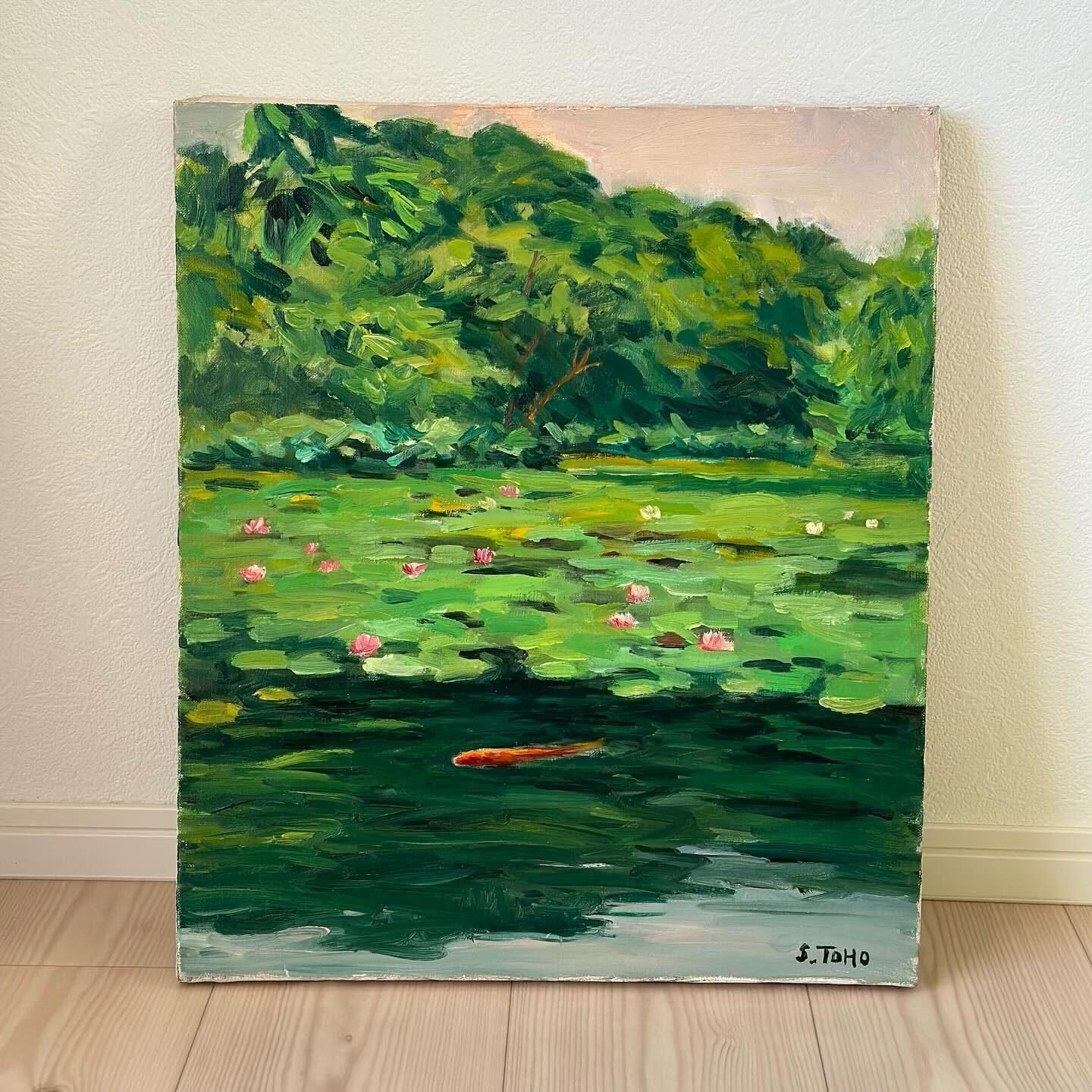 「睡蓮の池」 Uncategorized 2026.04.07 「睡蓮の池」 Water Lily Pond 東方昭然による油彩作品。 制作年不詳。 作品詳細 技法:油彩 支持体:キャンバス サイズ:F10(530×455mm) 制作年:不明 ギャラリー